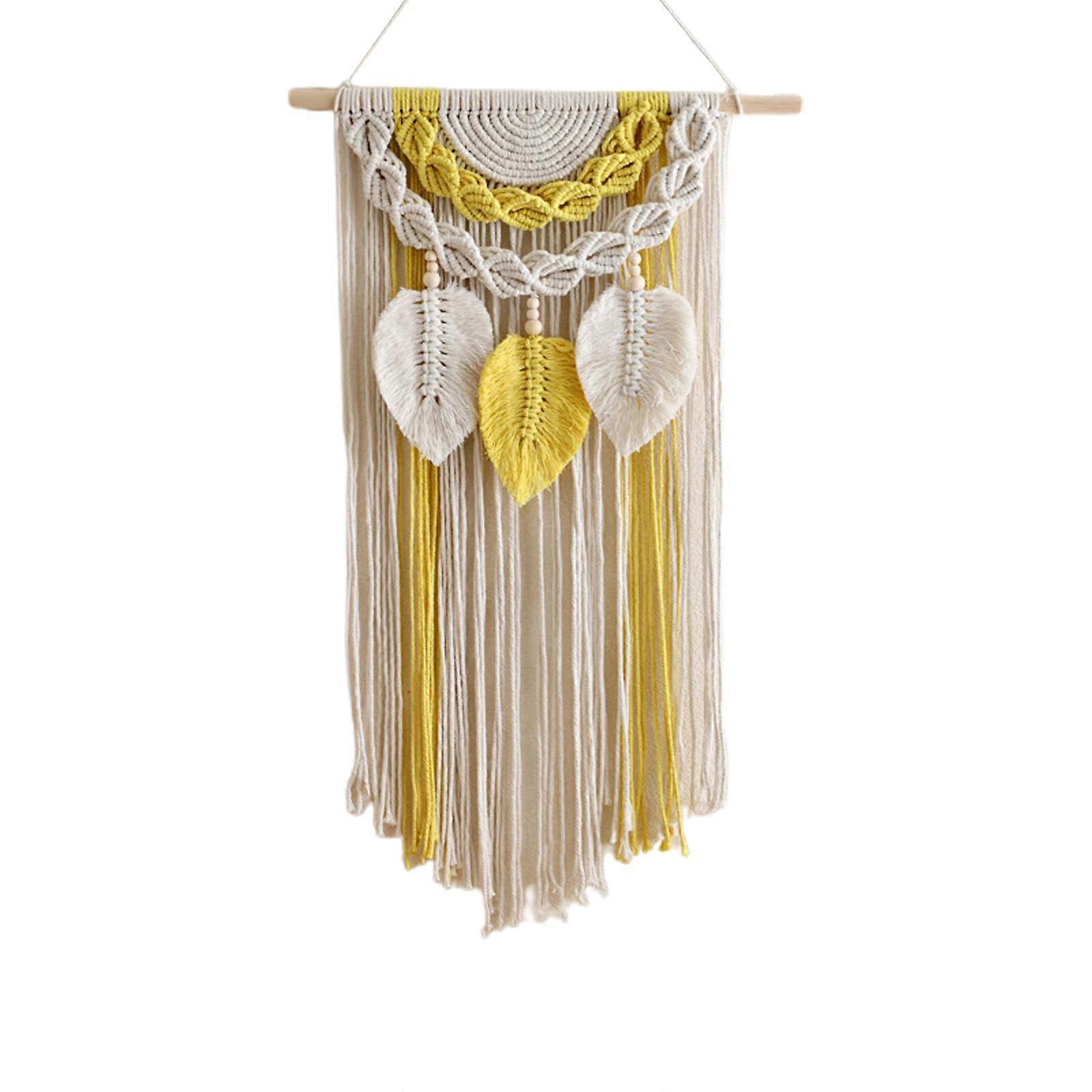 Macrame Wall Ornament Tassel Tapestry Boho Wall Hanging Decor Wall Art Decorations for Bedroom Living Room 15.7x26.37In Yellow