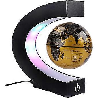 Magnetic Floating Globe With C-shaped Colorful Led Lights - Anti-gravity Rotating World Map For Gift Home Office Decoration (with Switch, Golden), Gol