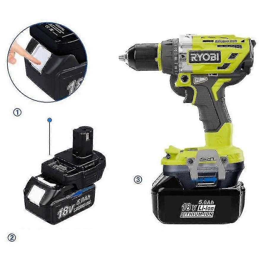 Converting Makita BL18 18V lithium battery to replace Ryobi 18V P108 P105 ABP1081 lithium nickel batteries power toolsThis battery adapter can convert Makita 18V lithium battery (BL1815,BL1830,BL1840,BL1845,BL1840B,BL1850B,BL1860B,B194205-3194230,4LXT400,CF201,BCF201Z,BCL180,BCL180F,BCL180W,BCL180Z,BCL180ZW,BCL182,BCL182Z,BCS550,BCS550F,BCS550RFE,BCS550Z,BDA350,BDA350F,BDA350RFE,BDA350Z,BDA351,BDA351RFE,BDA351Z,BDF450,BDF451,BDF451RFE) to replace Ryobi 18V lithium battery nickel battery (P105,P108,ABP1801)Function: Makita battery is used for Ryobi power tool by this converter.Products from GuanGuan's store