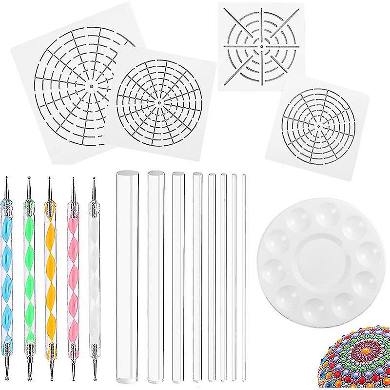 Mandala Art Dotting Tools 18 Set Including 4 Mandala Stencils, 8 Acrylic Rods, Paint Tray, 5 Double