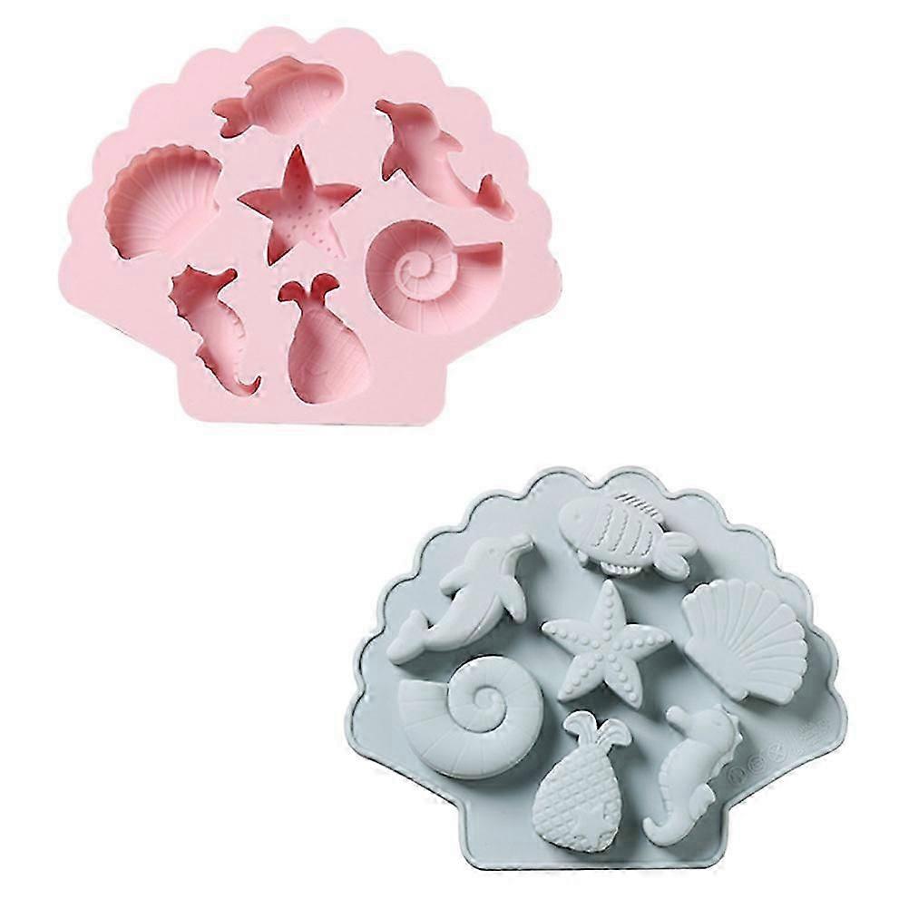 Marine Theme Fondant Silicone Moulds Cake Bakeware Home Cake Shop Use Pink 2Pcs
