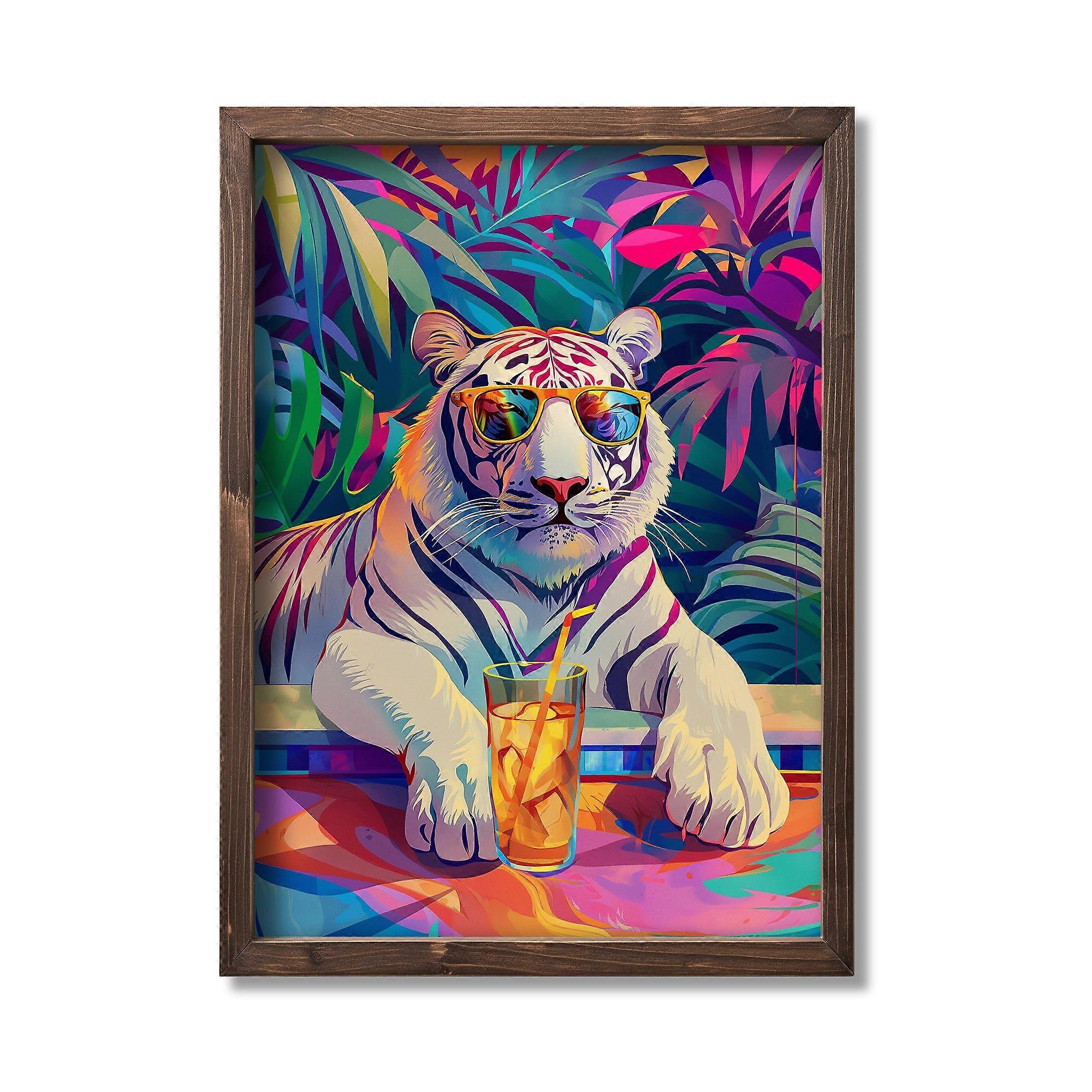 MDF print "Tiger sips soft drink"