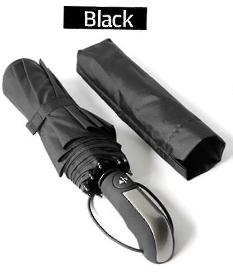 Mens Windproof Automatic 3-Fold Compact Umbrella Black