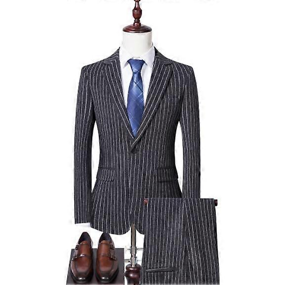 Mens 2 Piece Pinstripe Suit Slim Fit Casual Suits Blazer + Pants