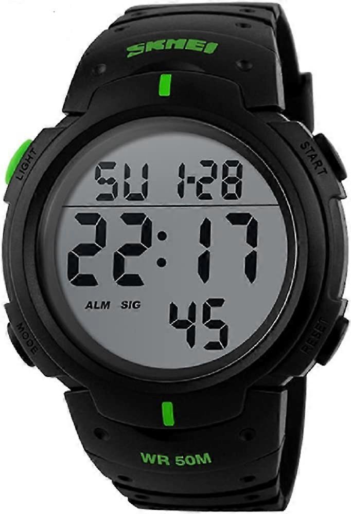 Mens Sports Digital Watch 5ATM Waterproof Watch Large LED Number Display Lumious Stopwatch Alarm Outdoor Army Watch 1068 green