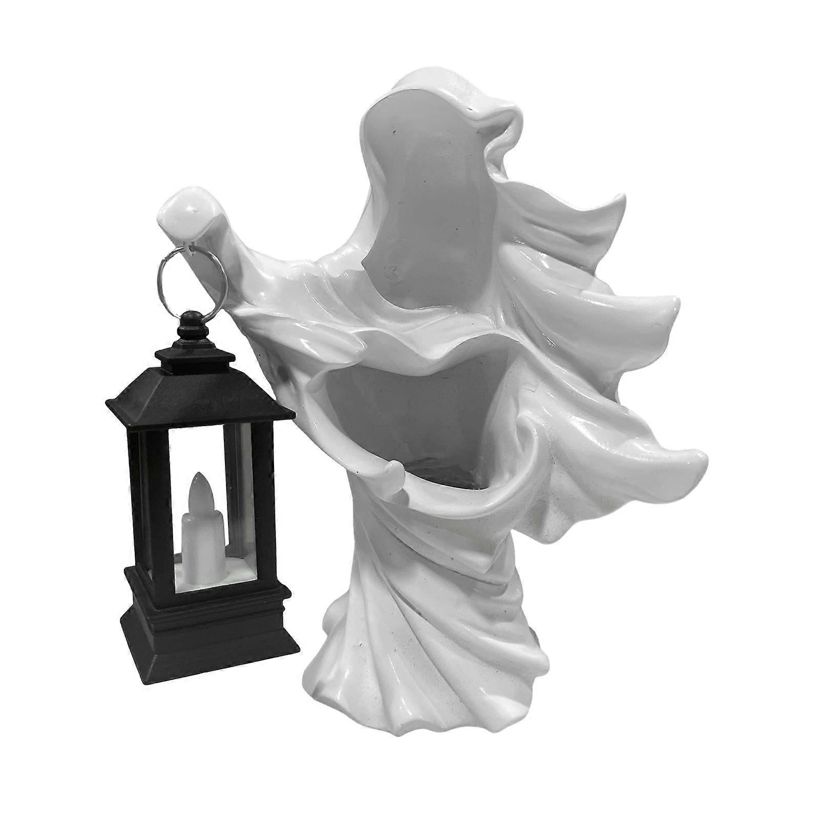 Halloween Hell Messenger Figurine with Lantern Black White Witch Ghost Light Resin Statue Sculpture Indoor Outdoor Garden Decoration Ornament