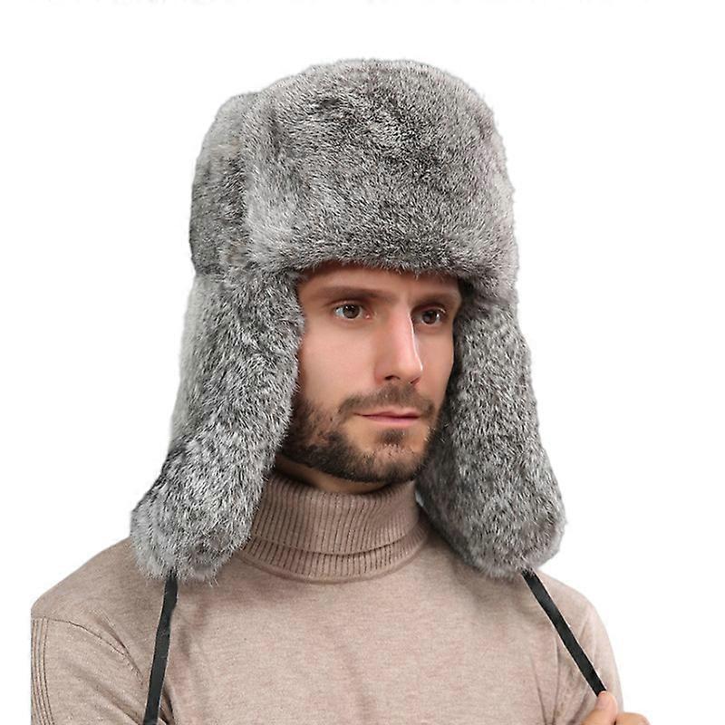 MIMIGO Genuine Rabbit Fur Russian Winter Hat Trapper Bomber w/Ear Flaps Christmas Gift For Men