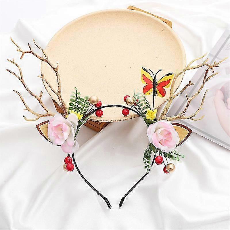 Mimigo 2pcs Christmas Headband Deer Antler Hair Band Deer Headband With Flowers Antler Hair Hoop Flower Headband For Party Cosplay Costume