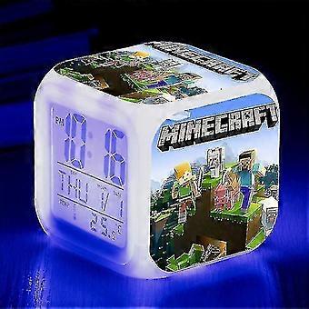 Minecraft Alarm Clock Coolie Scared Cartoon Led Digital Color Luminous Clock Birthday Gift Christmas Gift Style null none