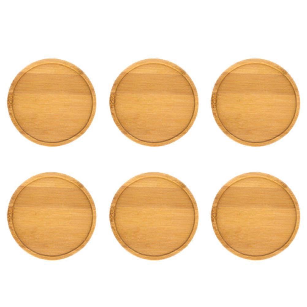 Modern Minimalist Bamboo Coasters Set of 6 for Storage Use Khaki Plastic 6.3x1cm