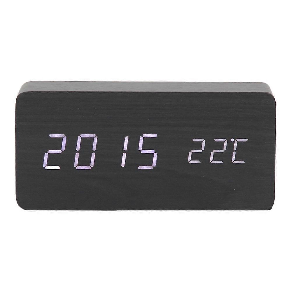 Modern Wooden LED Alarm Clock with Voice Control and Temperature Display for Family Black 4 AAA Batteries Not Included