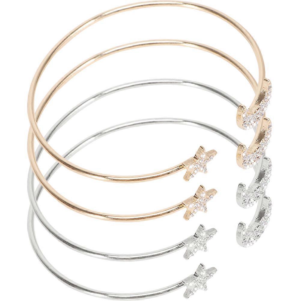 Moon Star Cuff Bangle Bracelet Adjustable Opening Design Fashion Jewelry for Women and Girls 4Pcs