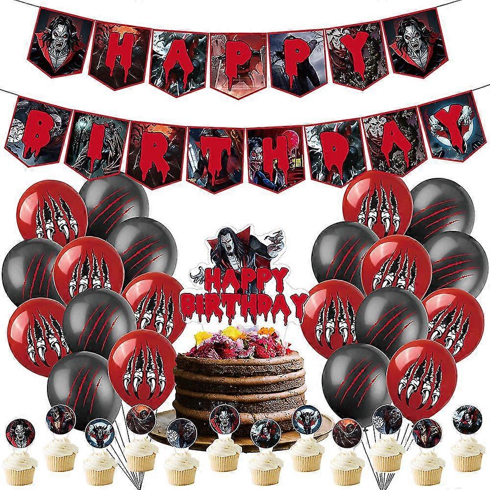 Morbius Gothic Theme Happy Birthday Party Decor Banner Cake Toppers Balloons Set