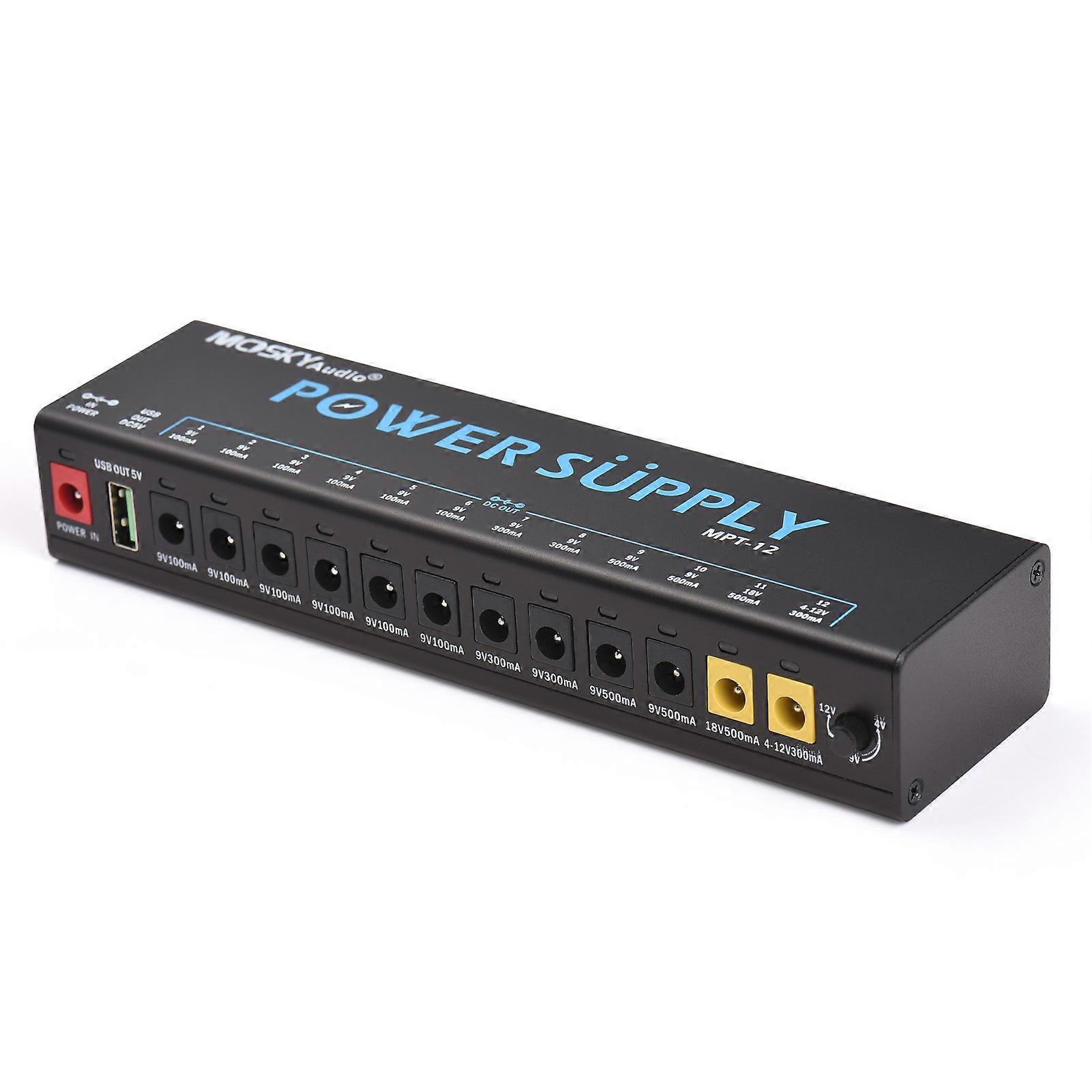 MOSKYAUDIO 12-Channel Pedal Board Power Supply with LED Indicator, USB Output & Short Circuit Protection for Guitar Effects & Portable Devices