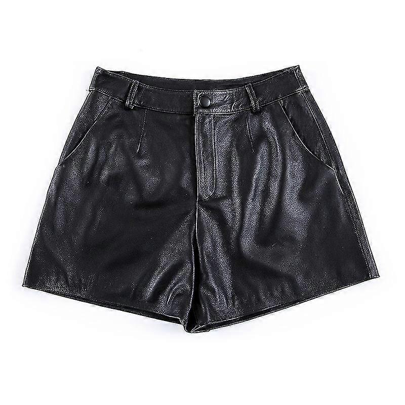 Natural Sheepskin High Waist Real Leather Shorts Women Zipper Moto & Biker Shorts Skinny Black For Spring Summer