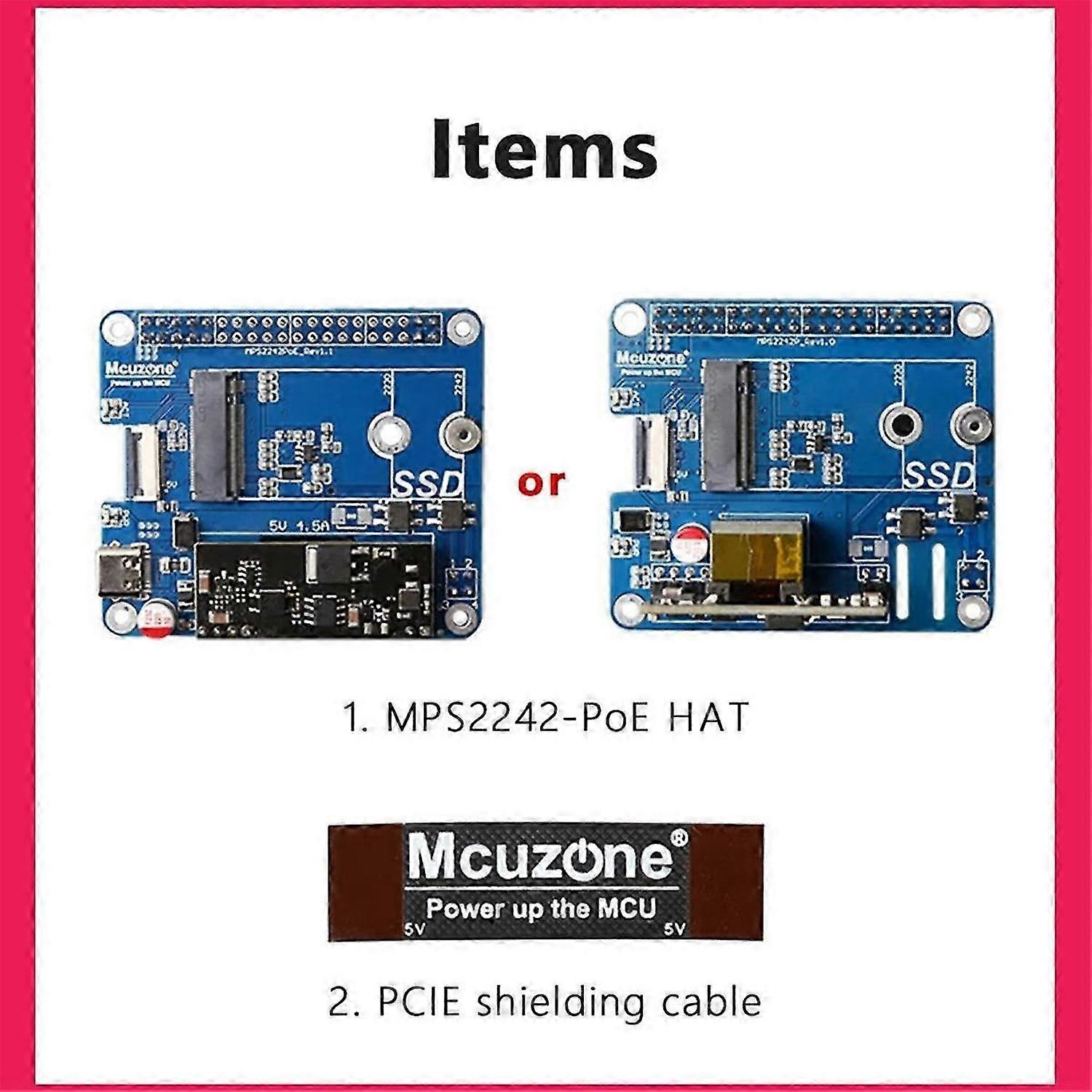 MPS2242-POE PCIE to NVME SSD 2242 HAT with POE Power for 5, 5V4.5A Power Supply,MPS2242-POE A Version