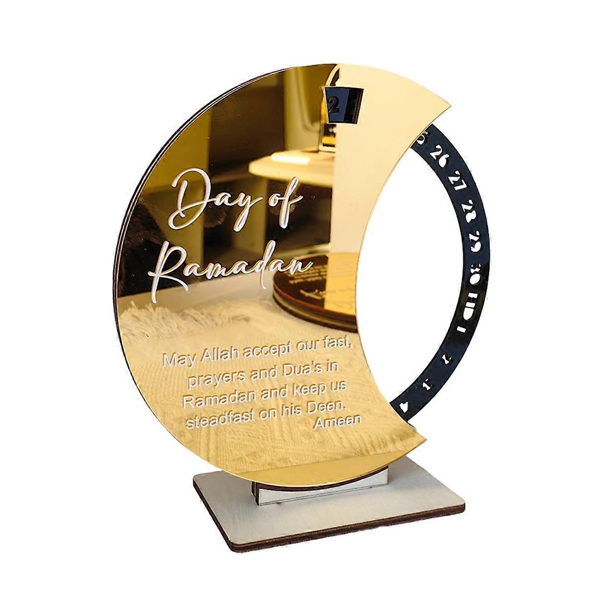 Mubarak Acrylic Moon Ornament Ramadan Table Decoration Gold+Black
