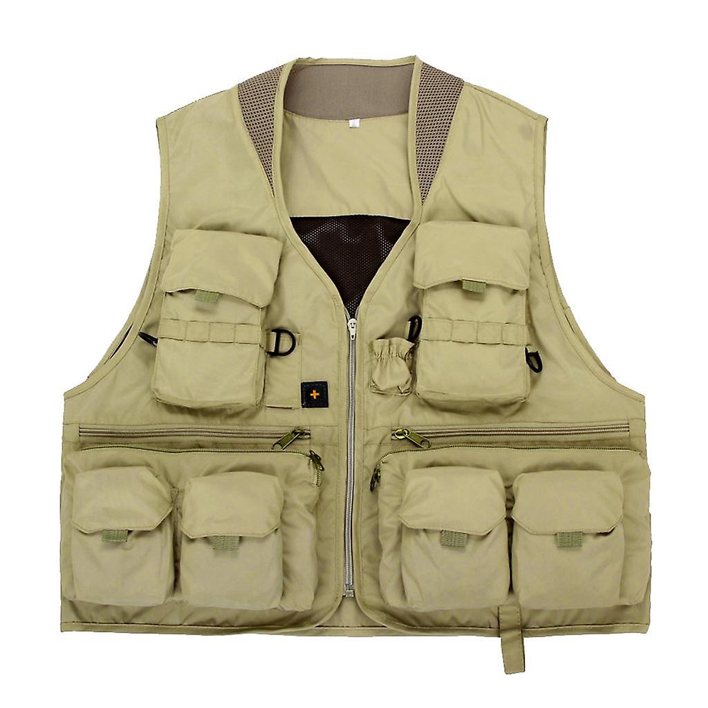 Multi Pocket Outdoor Photography Hunting Fishing Vest Jacket L Khaki