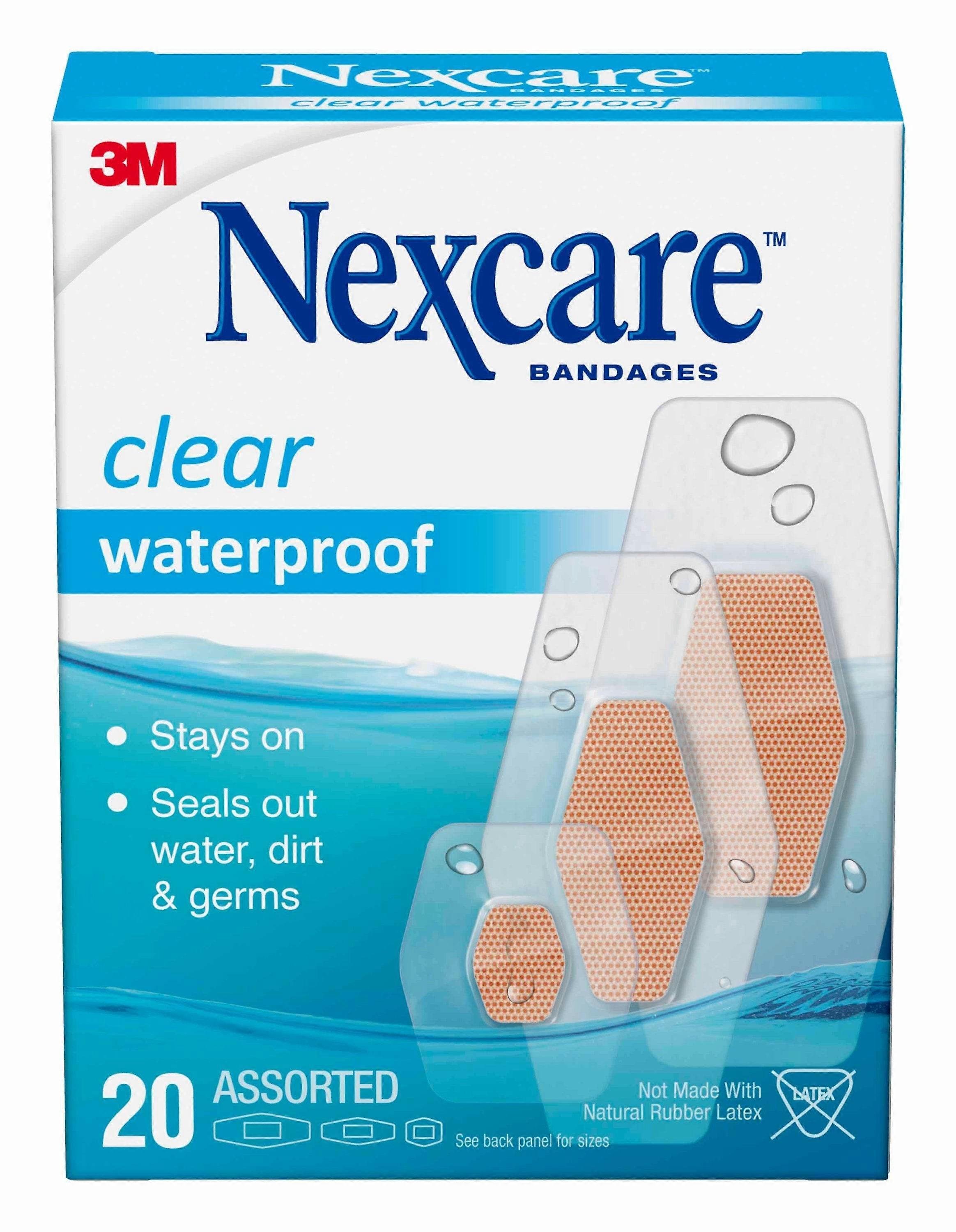 Nexcare Waterproof Clear Bandages, Assorted Sizes, 20 Ea