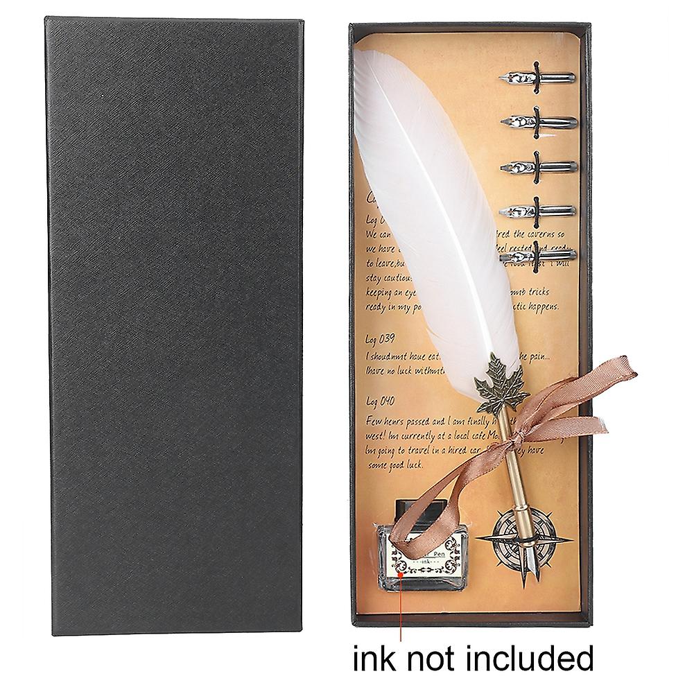 Retro Metal Pen Tube Stainless Steel Nibs Dip Writing Feather Pen with Packing Box(White)