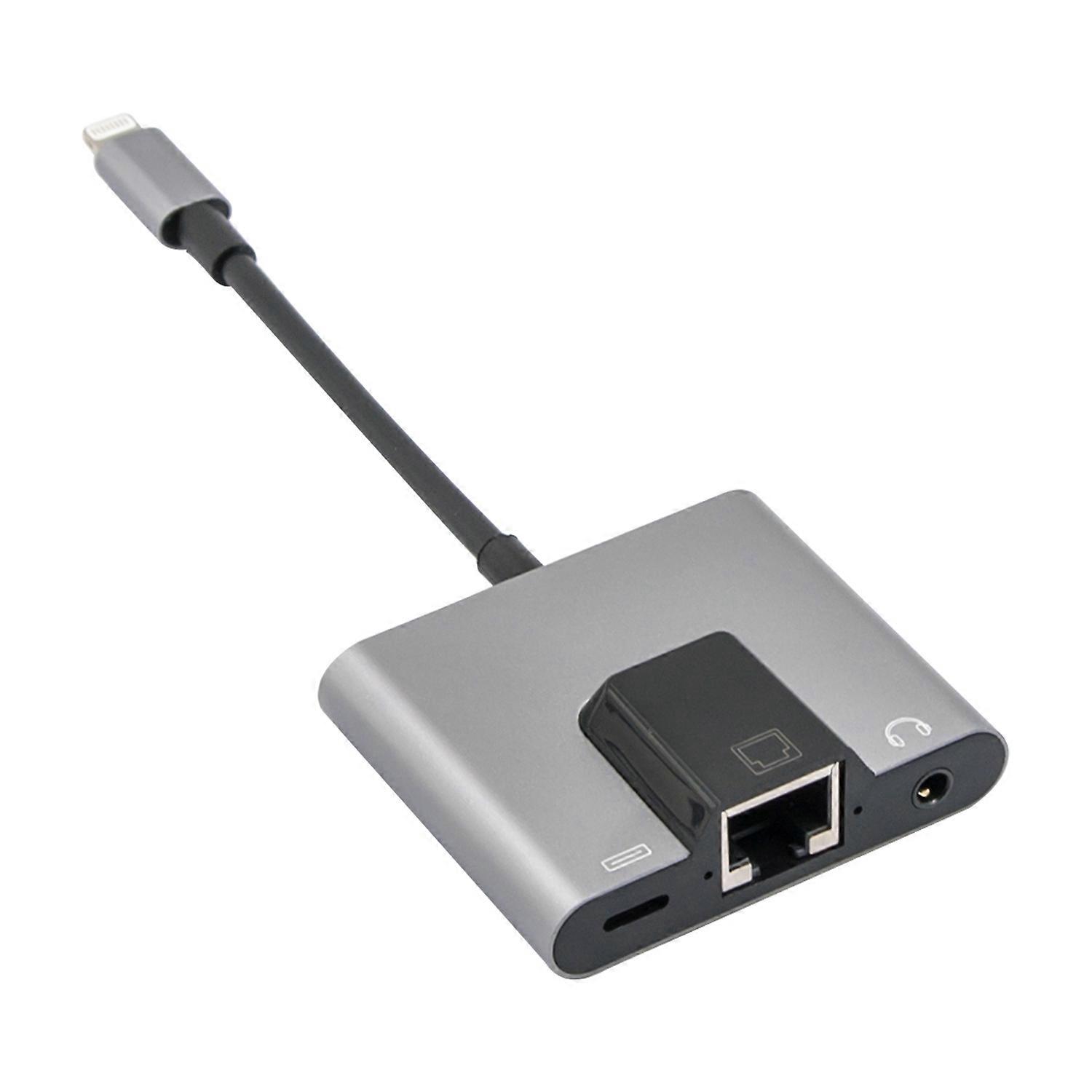 NK-1056 3 in 1 8 Pin Male to 8 Pin Charging + RJ45 Ethernet + 3.5mm Earphone Female Adapter