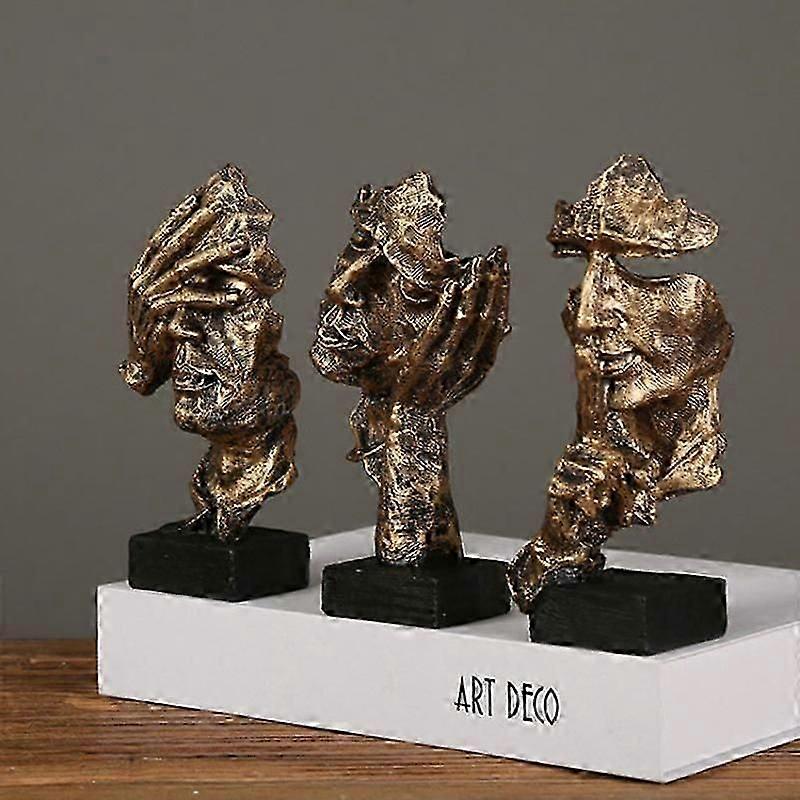 Nordic Vintage Silence Is Gold Statue Resin Thinker Sculptures Figurines Home Decor Resin Craft Office