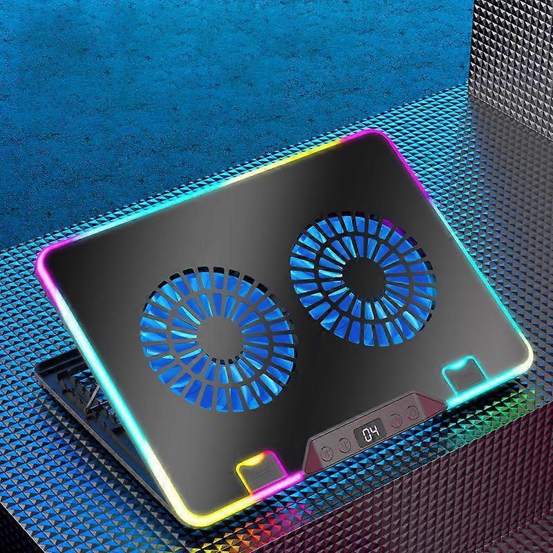 NUOXI F36-2 6-Speed Adjustable Dual-Fan Ultrathin Laptop Cooler 1. Product size: 366 x 268 x 20mmmm 2. Product N.W: 1kg 3. 6-speed adjustable 4. Fan Size: 9 x 9 x 1.5cm x 2pcs 5. Fan speed: 1500+-10%RPM 6. Noise: <=25dba 7. Input: 5V 8. Input power: 4W 9. Dual fans, ultra-thin design, metal panel 10. LCD gear display, button control for lightingwindmode 11. Suitable for laptops under 18 inches 12. Multi-mode cool RGB lighting effect, 3-speed brightness adjustment 13. Multi-angle adjustment, in line with ergonomics