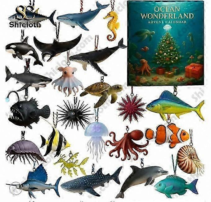 Oceanic Treasure Advent Calendar Blind Box Holiday Ornament Acrylic Charm for Christmas Tree Decoration