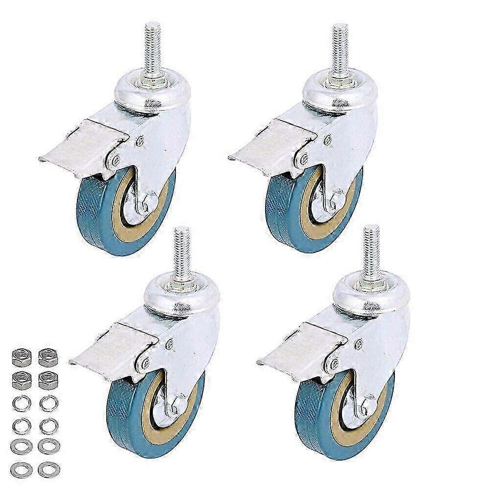 Pack, Non-Marking Polyurethane Caster Wheel Locking Swivel with Swivel and Locking Casters for Carts, Furniture, Tool Carrier (M10 Threaded Stem-3")