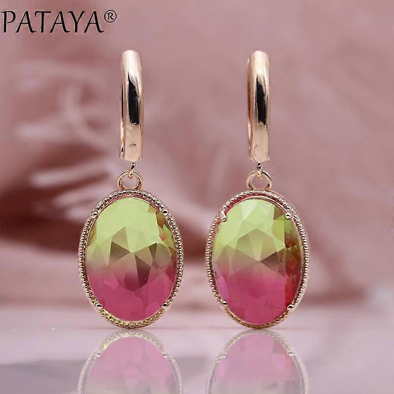 PATAYA Oval Long Earrings Ring Sets Women Fashion Wedding Party Noble Multicolor Natural Zircon Jewelry Sets