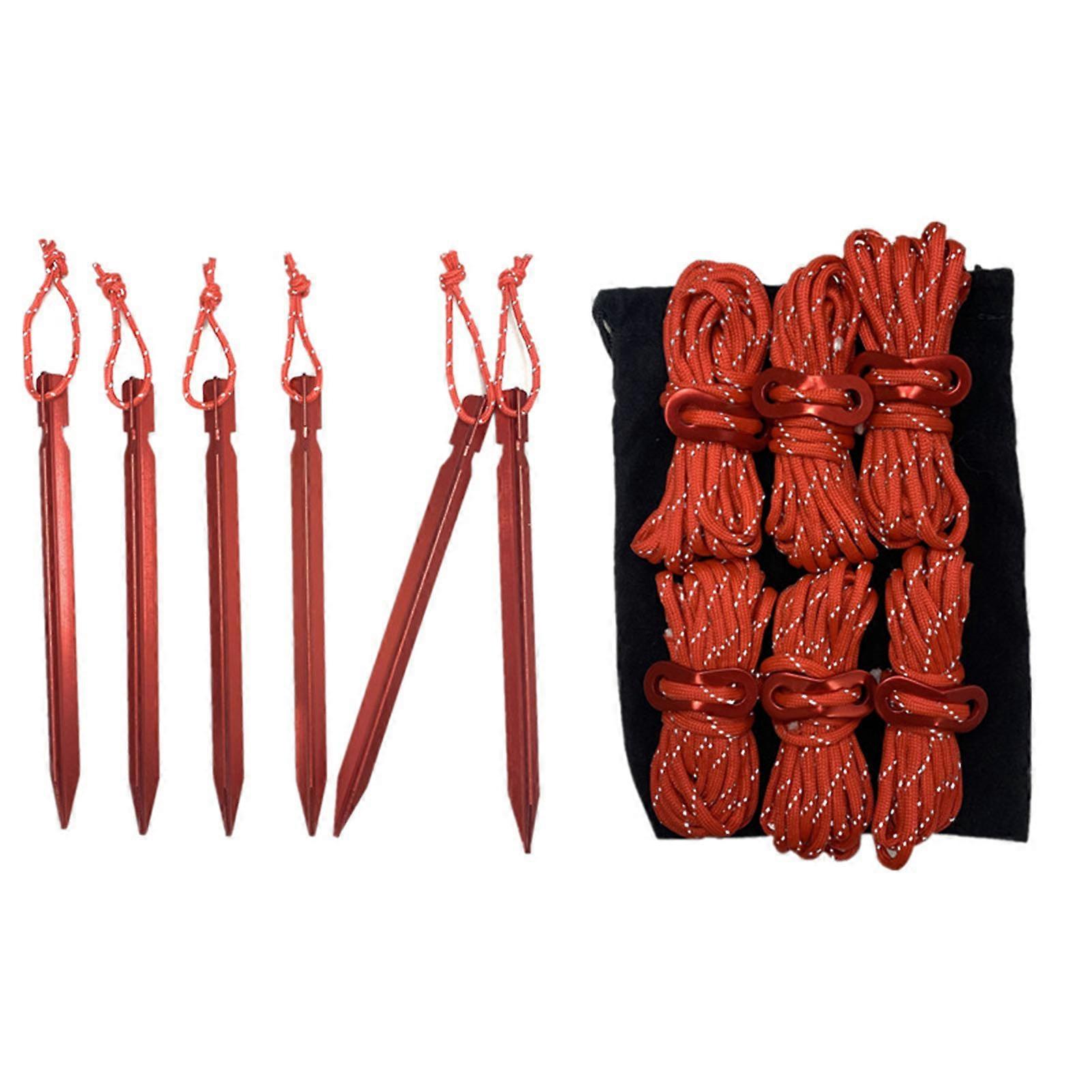 Tent Ropes Peg Buckles Reflective Ropes Set with Storage Bag for Outdoor Camping Red