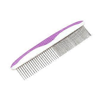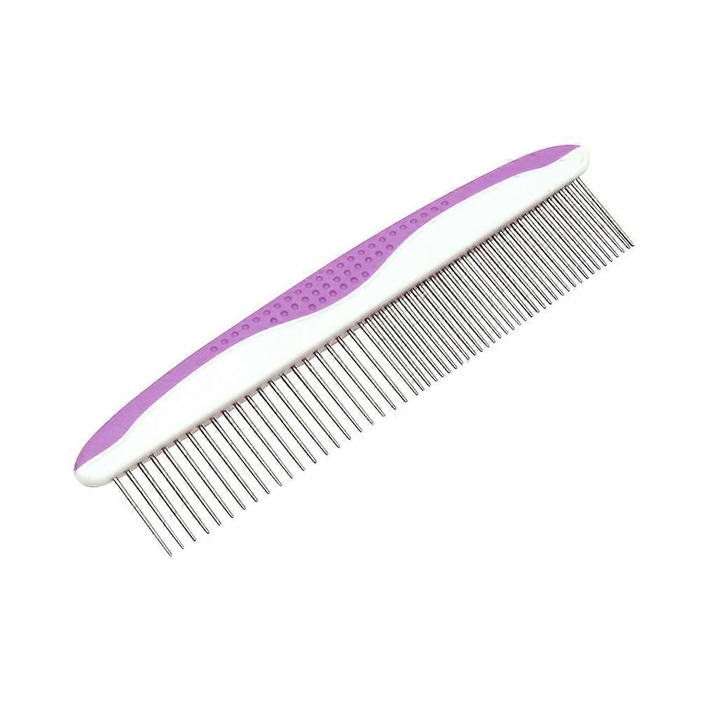 Pet Grooming Combs Stainles Steel Round Head Pet Flea Comb Single Row With Nonslip Grip (Purple)