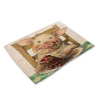 Pig Print Cotton Linen Anti-Slip Heat-insulation Placement Bowl Plate Fork Table Mat(MA0024-10)