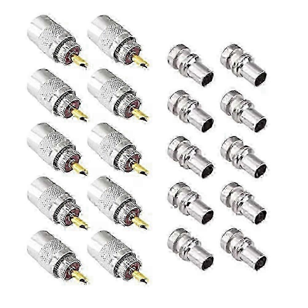 PL-259 Coaxial Connectors UHF Male Solder Connector Plug 50 Ohm Coax Adapters 10-Pack with Reducers for LMR400,RG8 Cable