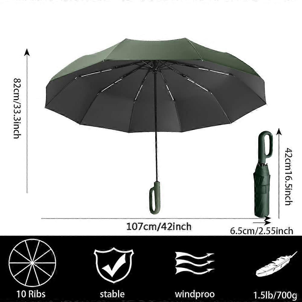LOOP BUCKLE HANDLE DESIGN: Ergonomic handle design, you can hang it anywhere and hold it for a long time without any effort. You can easily hang it on handbags, backpacks, belts or buses, as well as on subway handrails. When you get home, you can also simply hang it on a wall hook. LARGE SIZE: The diameter under the canopy can be up to 107 cm, providing space for 2 people at the same time. Perfect companion for outdoor activities, camping trips, fishing, golf, hiking, commuting and school. It is compact and lightweight, but also protects you and your friends and family in every way. 60-KNOT REINFORCED AND COMPACT UMBRELLA: 60-bone main frame, each bone is made of three high-strength fibre bones, making it many times more wind-resistant. The main frame is made of synthetic steel, which does not corrode or rust easily and is lighter in weight. It is very windproof and waterproof and has a long service life. DOUBLE PROTECTION: Our umbrellas with waterproof technology and imitation lotus leaf are effectively waterproof, so you can dry off in no time and don't have to worry about storing your umbrella after use. Our UV-protected umbrella has a vinyl coating that blocks 99% of UV rays from the outside. It protects you from harmful rays on both sunny and cloudy days. Add it to your list of essential travel items, whatever the weather. AUTOMATIC OPENING/CLOSING: Press the button with one hand and our umbrella opens/closes automatically in one second. You no longer have to struggle to close the umbrella when entering a car, building or tent. With this umbrella, you no longer have to wait for it to open or close when you are caught in the rain! Loop Buckle Handle Design: Ergonomic handle allows for easy hanging on handbags, backpacks, belts or subway handrails. Practical for on the go. Large size: Diameter up to 107 cm, space for 2 people. Ideal for outdoor activities such as camping, hiking and commuting. Compact and lightweight. 60-knot compressed umbrella: 60-bone skeleton made of high-strength fibres, windproof and waterproof. Lightweight, corrosion-resistant and durable. Double protection: Lotus leaf imitation hydrophobic coating for quick drying. Blocks 99% of UV rays and protects from sun and rain. Automatic opening/closing: One-button operation opens and closes the umbrella in seconds. No more waiting in the rain or wind.