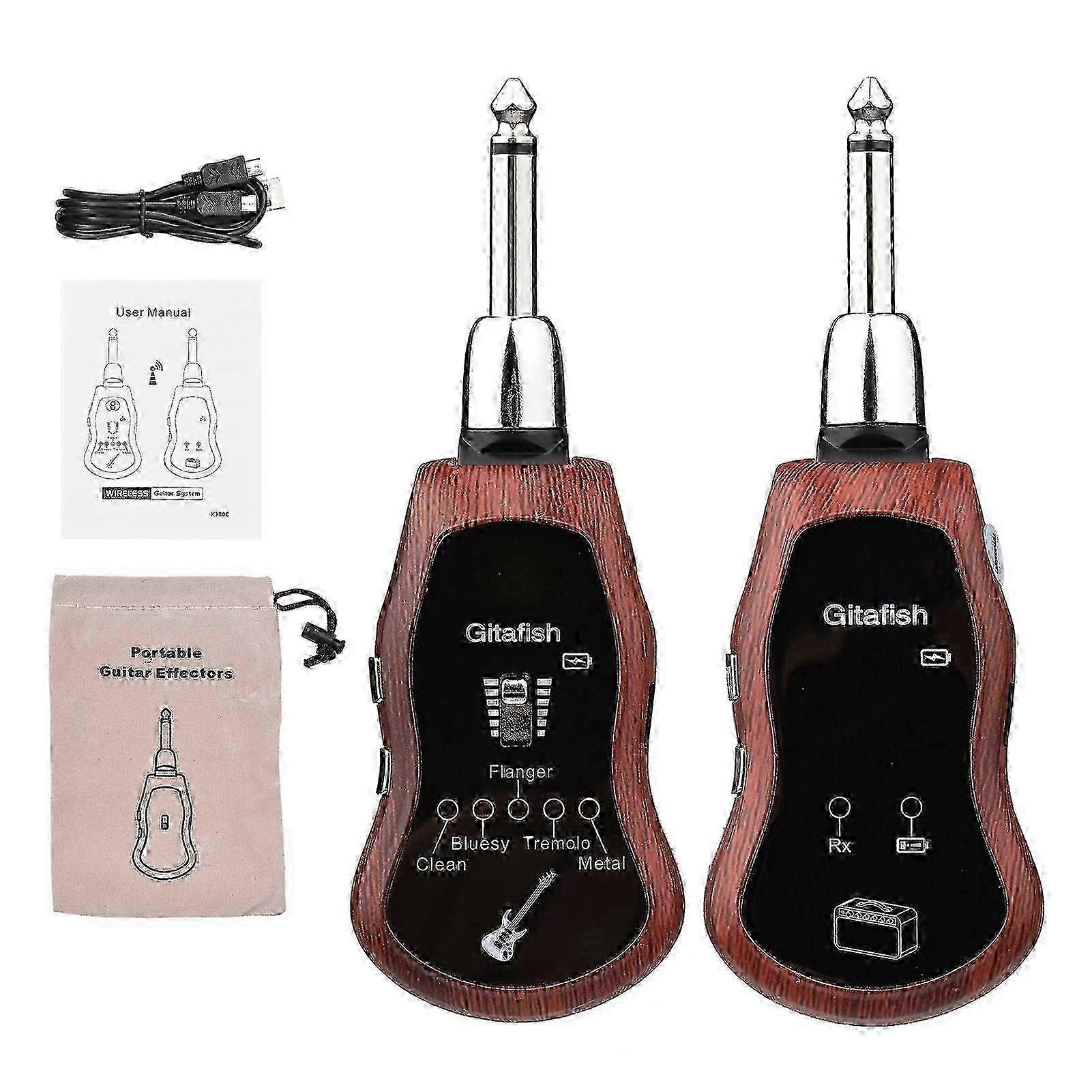 Portable UHF Guitar Wireless System Transmitter + Receiver 10 Channels Built-in 5 Effects (Clean/Bluesy/Flanger/Tremolo/Metal) for Electric Guita
