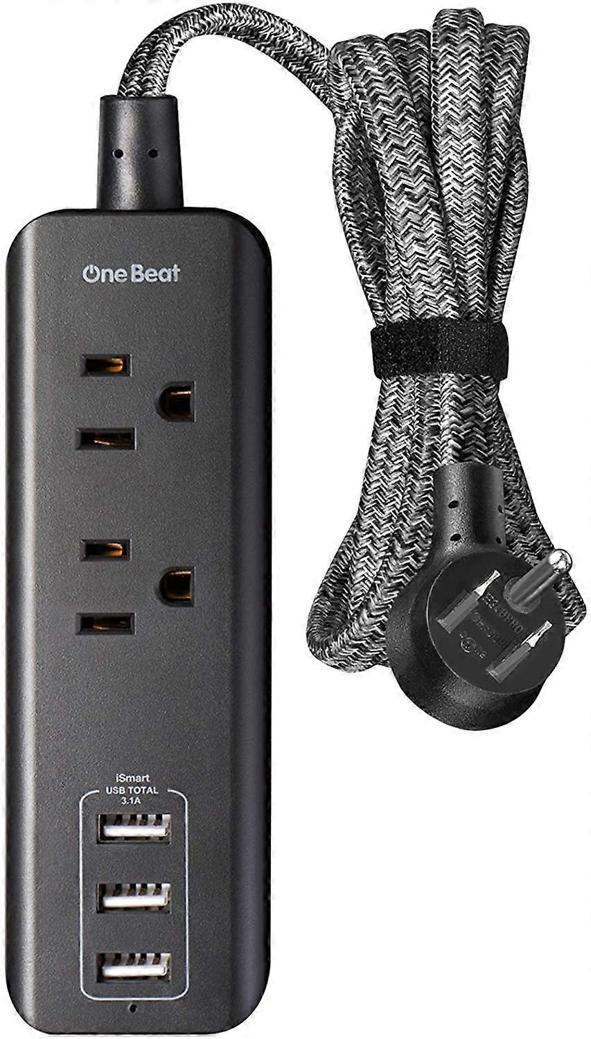 Power Strip Power Bar with 3 USB Charging Ports 2 Outlets, Desktop Charging Station Surge Protector with 5 Ft Braided Extension Cord Indoor, Flat Plug