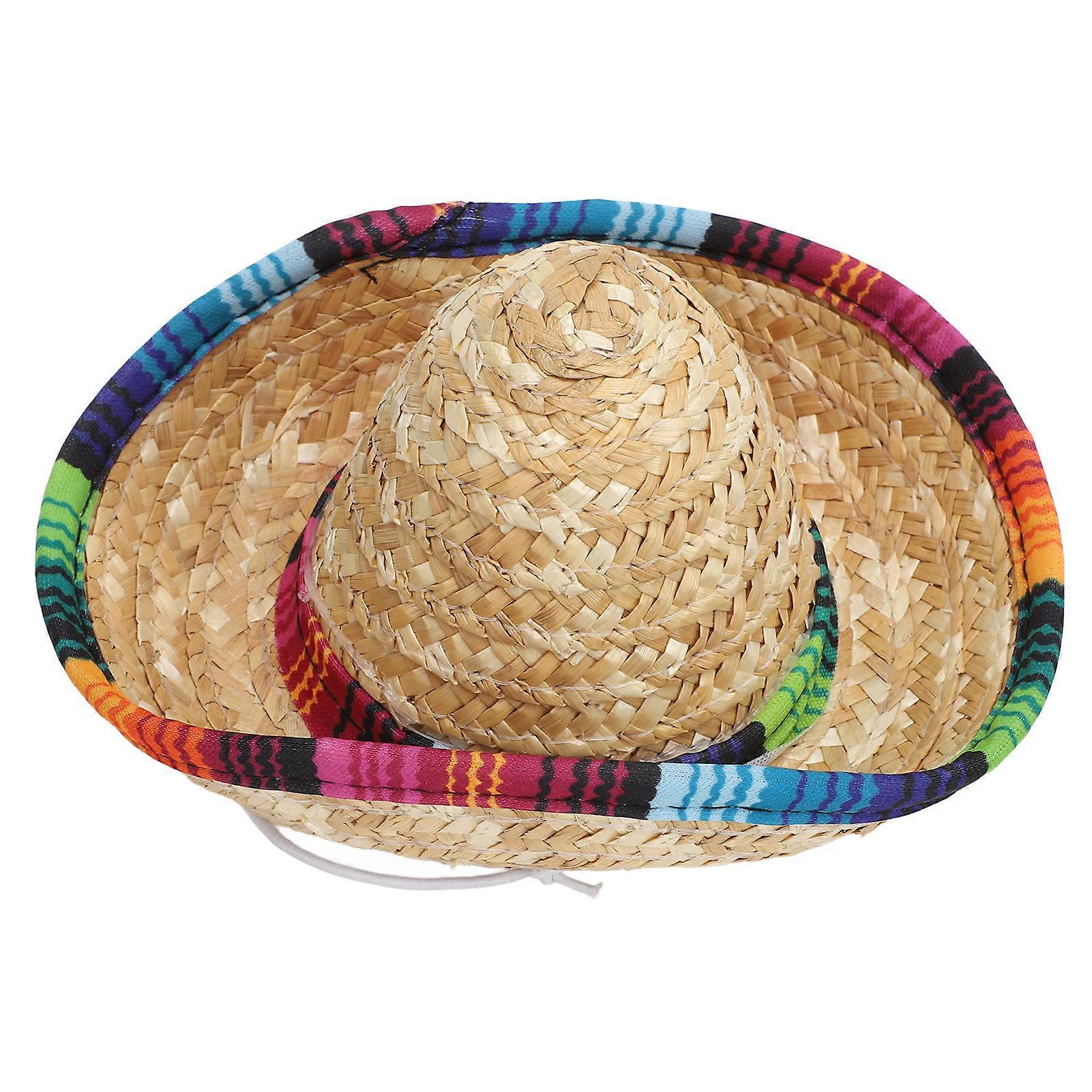 Dog Straw Hat Wide Brim Decorative Colorful Edging Sun Hat for Pet Puppy Cat Photo Prop