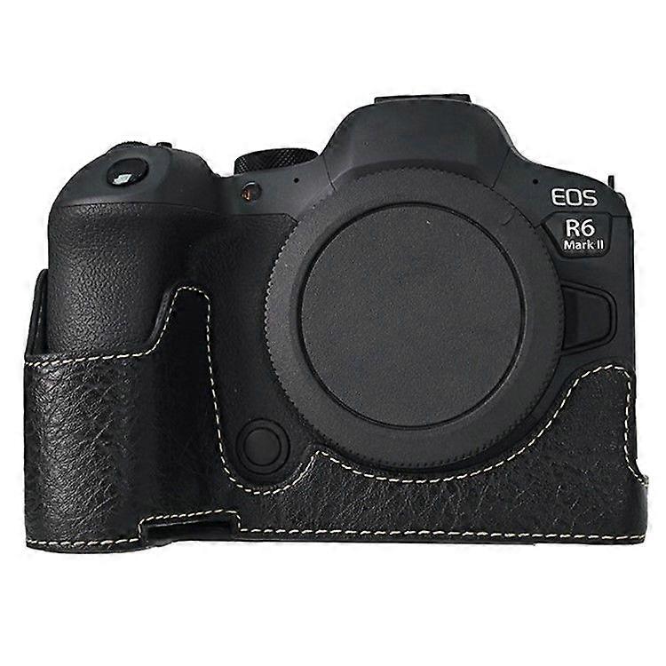 PU Leather Protective Camera Case For Canon EOS R6 Mark II/ R6/ R5, Large Cutout Litchi Texture