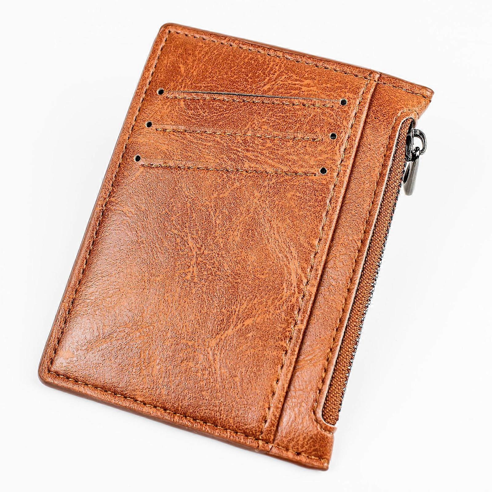 Fashion Card Holder PU Leather Small Coin Puse Organizers Thin Slim Wallet with Zippered Pocket Great for Everyday Use brown