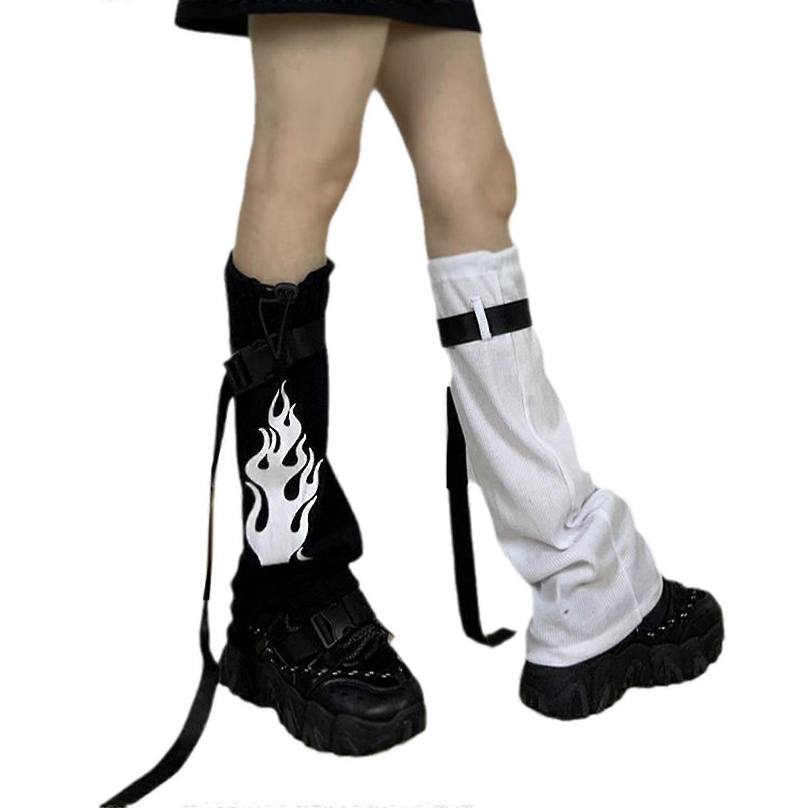 Punk Gothic Leg Warmer Fire Printed Foot Cover Leg Sleeve Long Socks for Party Sports Casual Stockings