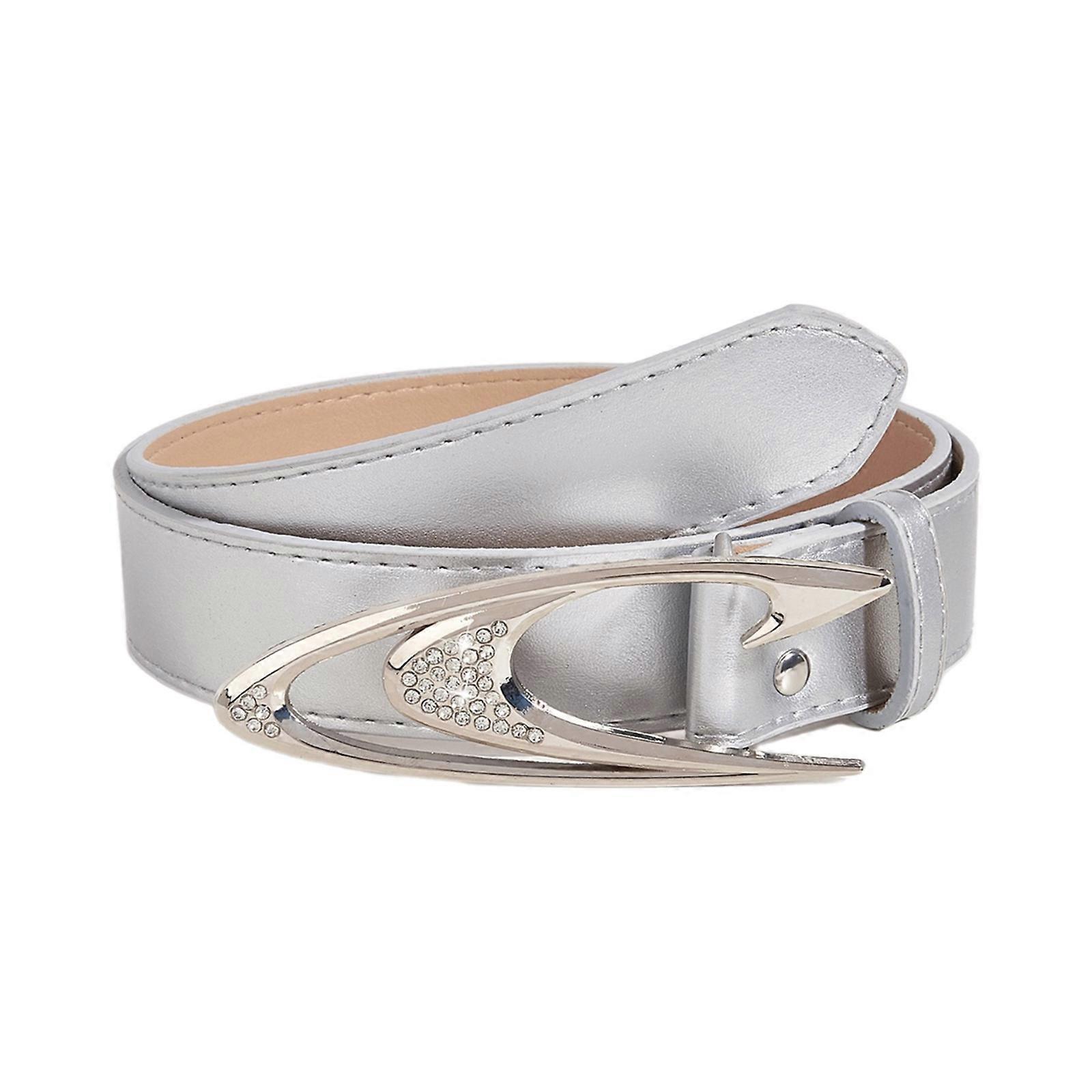 Punk PU Waist Belt for Jean Rock and Roll Hip Hop Studded Belt Waistband Glinting Buckle with Encrusted Rhinestones Silver