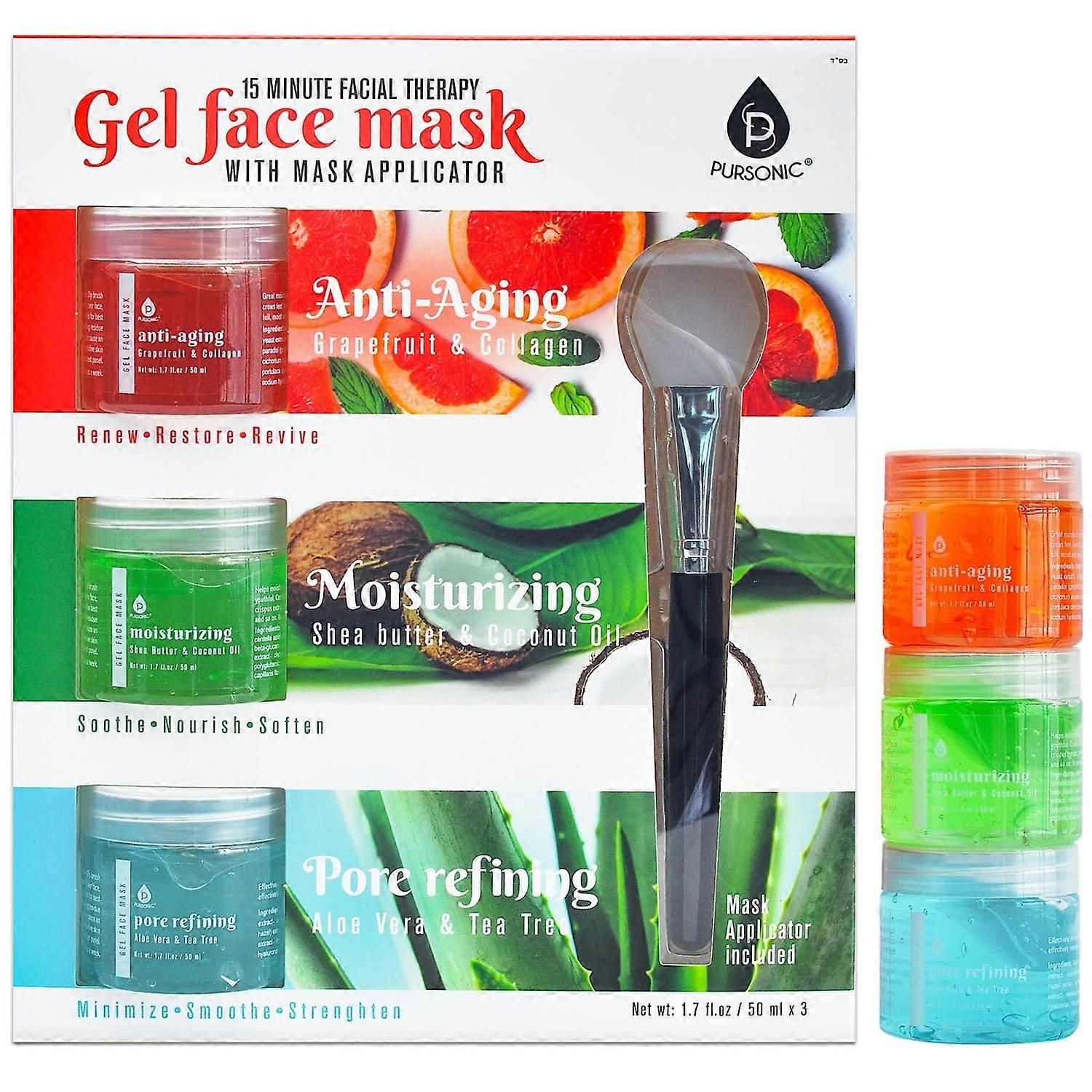 Pursonic Gel Face Mask Pack, Anti-aging + Moisturizing + Pore Refining, 3 Ea