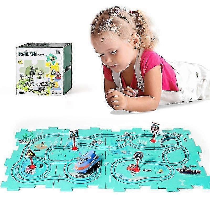 Puzzle Track Car Play Set, Plastic Floor Puzzles Christmas Gift for Kids