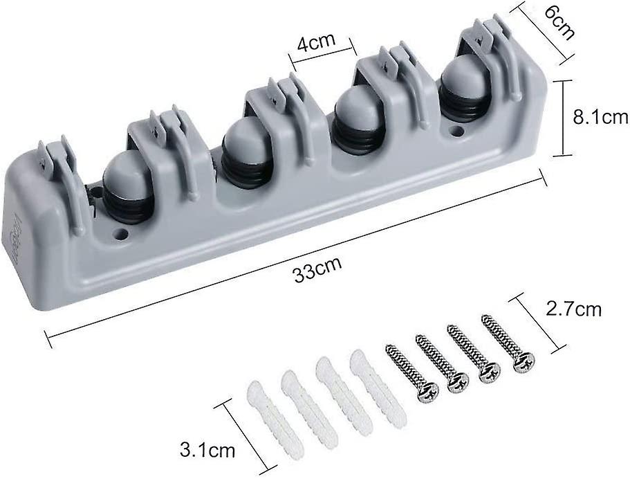 Pxcl Multi-function Wall-mounted Broom Holder, Storage Hanger Holder For Your Kitchen, Garage, Laundry Room (4 Slots And 5 Hooks)