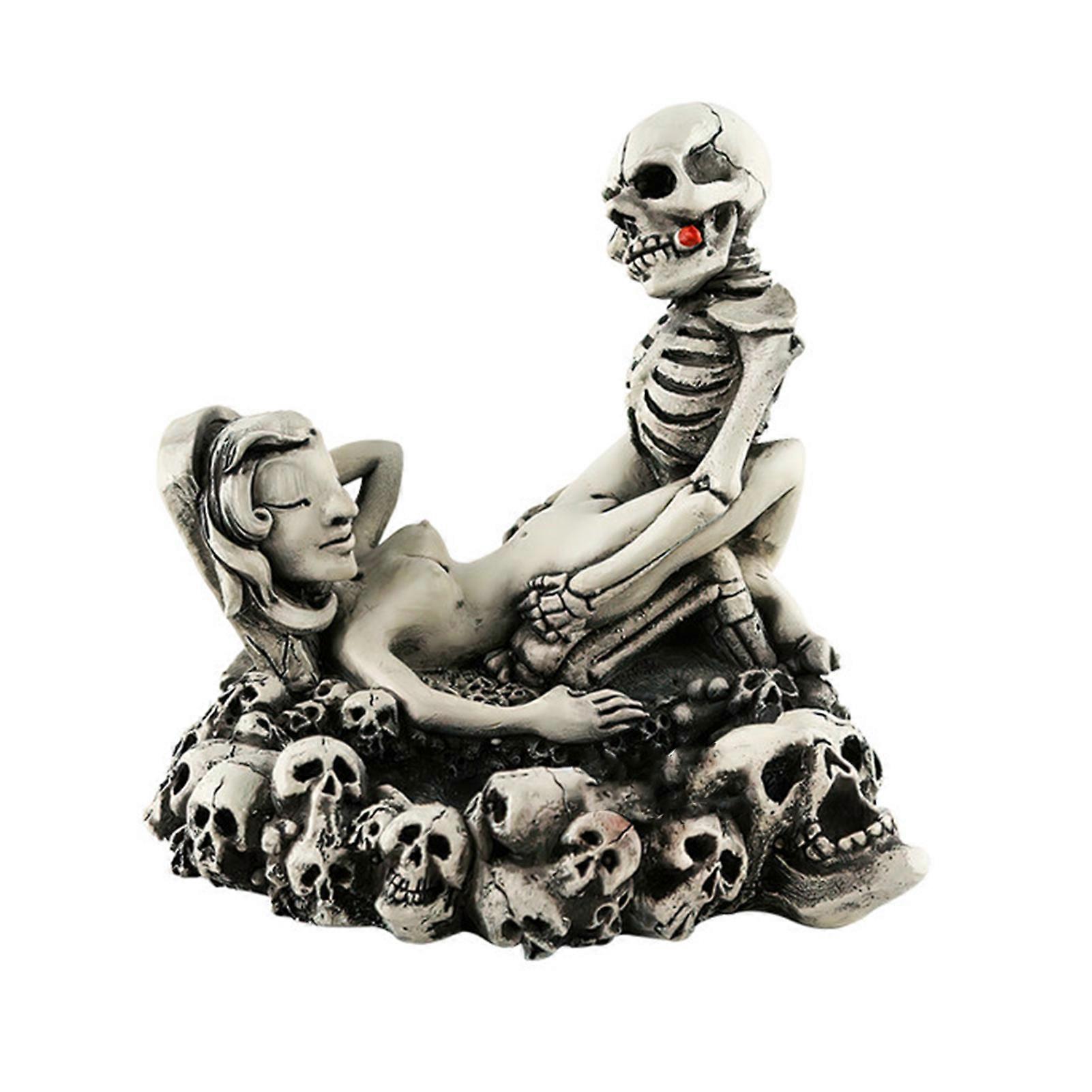 Halloween Couple Skeleton Ashtray Spooky Rose Skull Ghost Lover Resin Figurine Ash Holder Storage Tray Desktop Decoration Ornament Qinghai