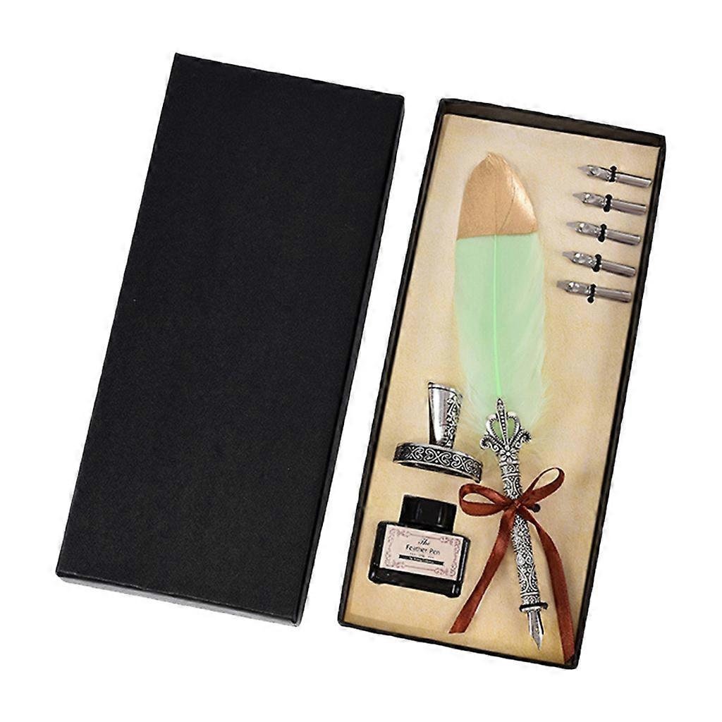 Quill Feather Pen Set Calligraphy Pen Set Writing Quill Ink Dip Pen Quill Pen for w/ 5 Replacement Nibs Pen Base Holder