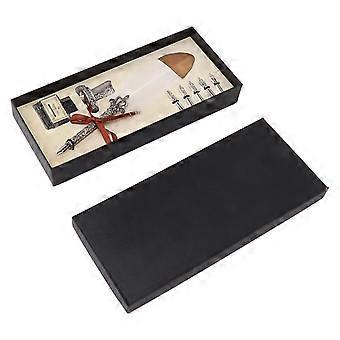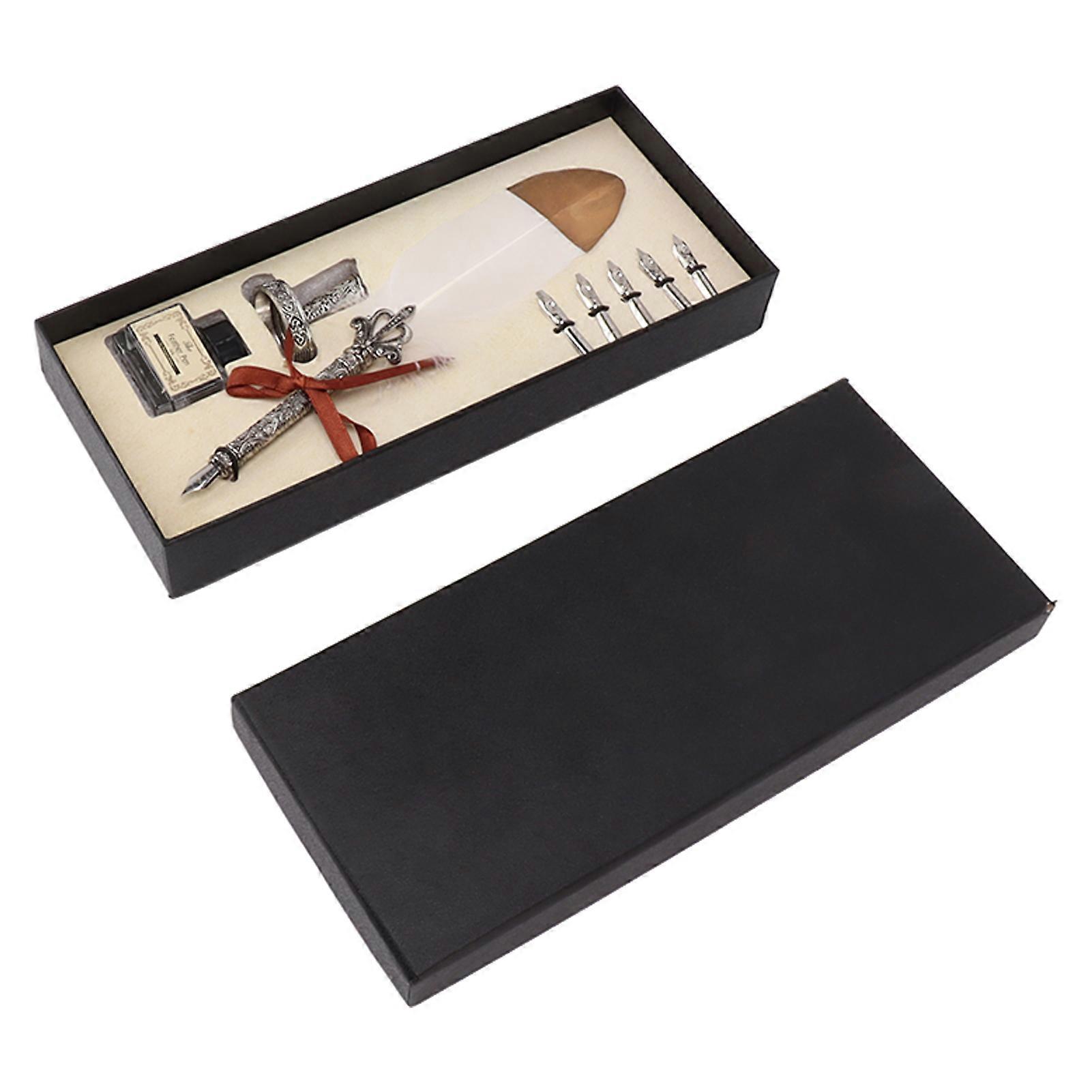 Quill Pen Set Antique Exquisite 5 Replacement Nibs Feather Pen with Ink Bottle for Men Women