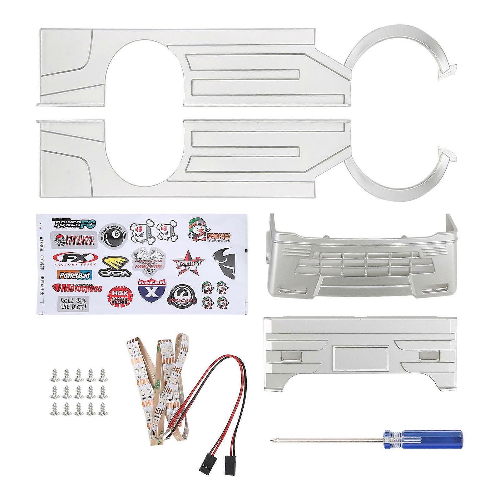 RC Wide Body Kit Large Surrounding Cover LED Light Modification Kits for WPL D12 RC Truck SilverBlue