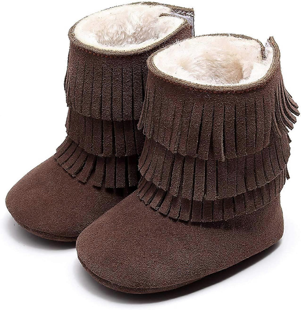 Real Leather Fringe Baby Booties for Girls Boys Winter Warm Snow Boots with Tassels Soft Sole Fur LinedToddler Moccasins Shoes